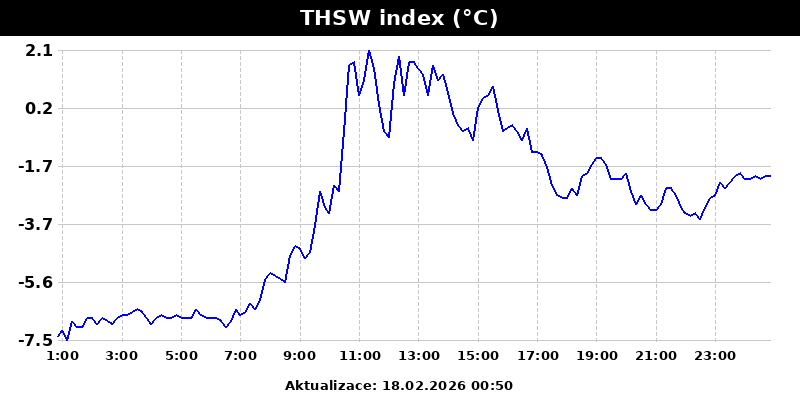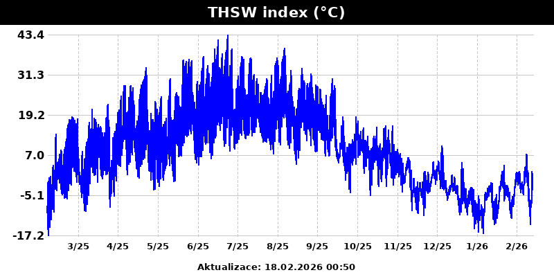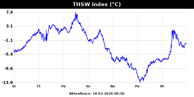 THSW index - pocitová teplota s uvážením teploty, vlhkosti, slunce a větru