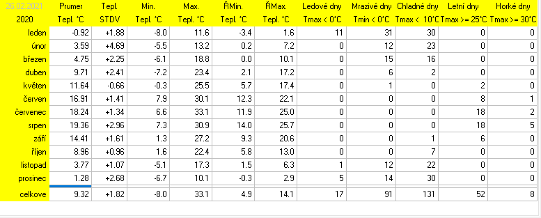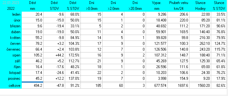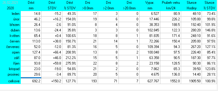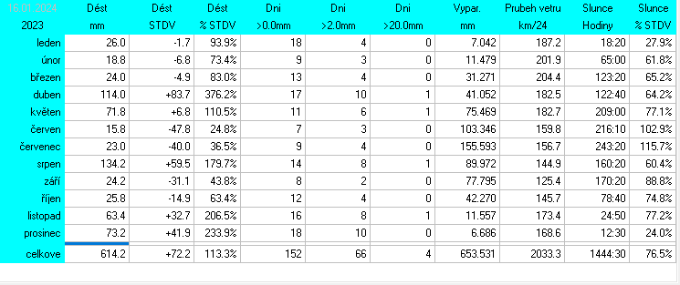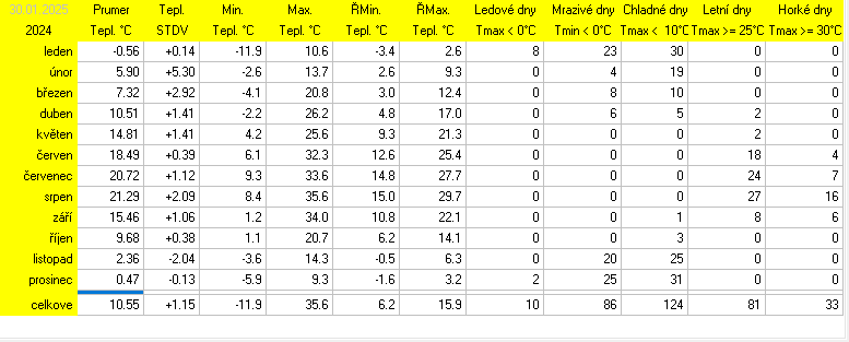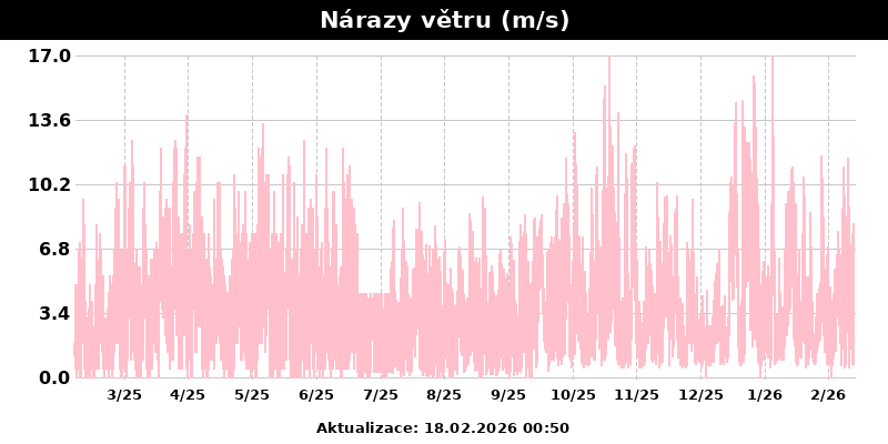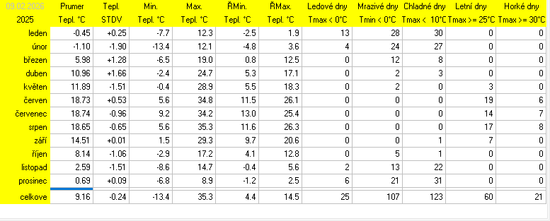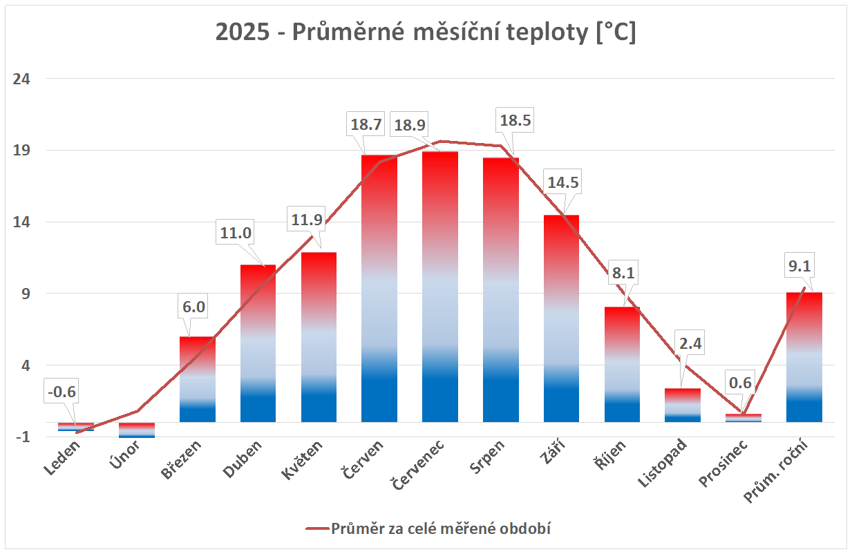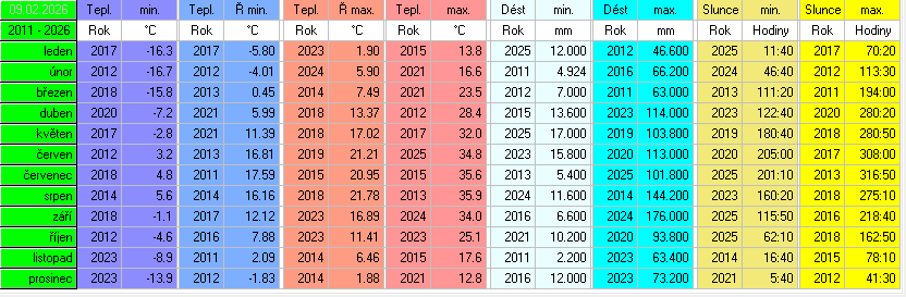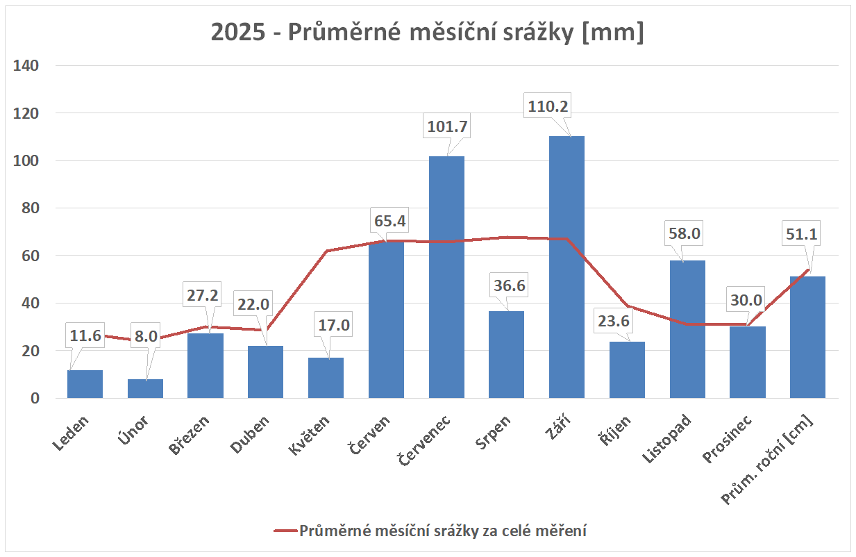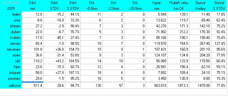 Stanice je v provozu od 14.7.2025. Starší data jsou vzata z předchozí meteostanice Davis Vantage2 Pro.