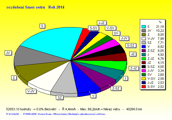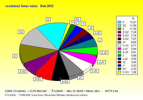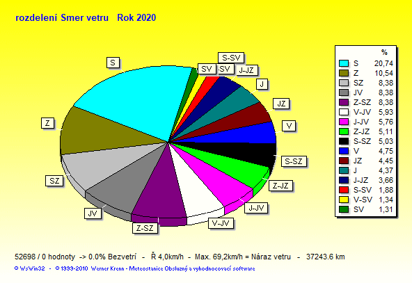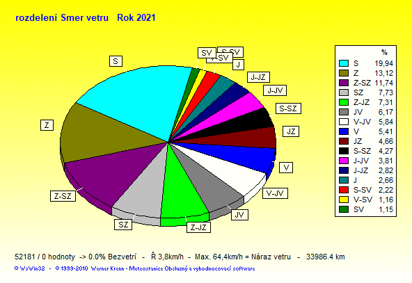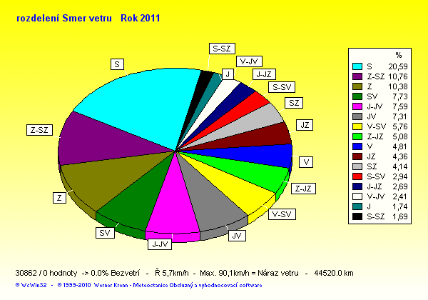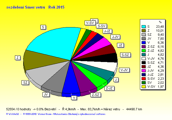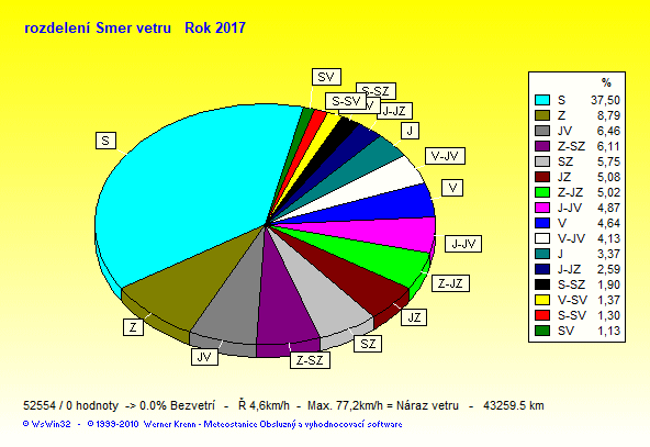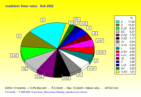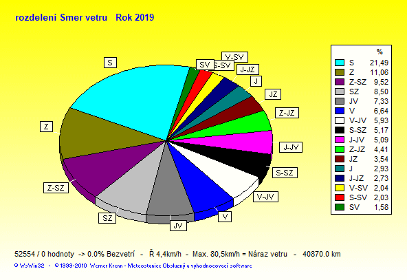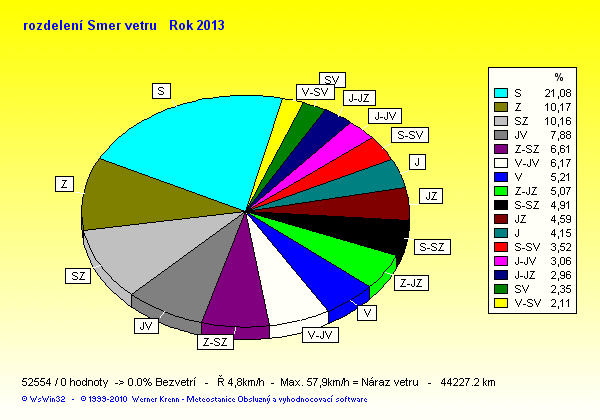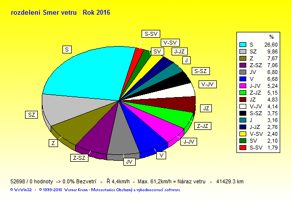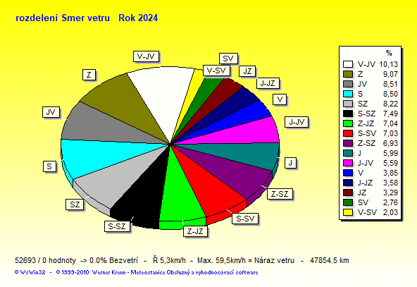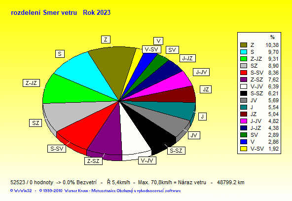 Wind Direction - směr větru: Z-západ, S-sever, J-jih, V-východ