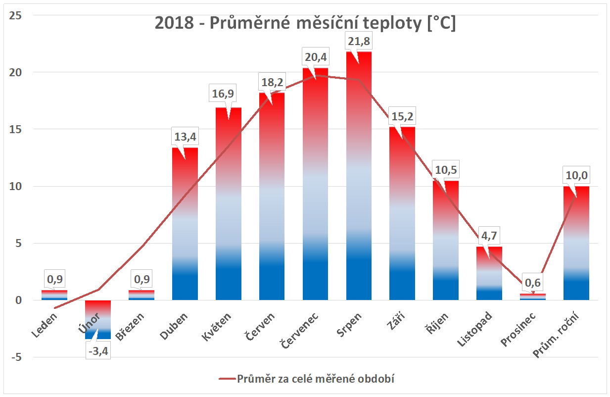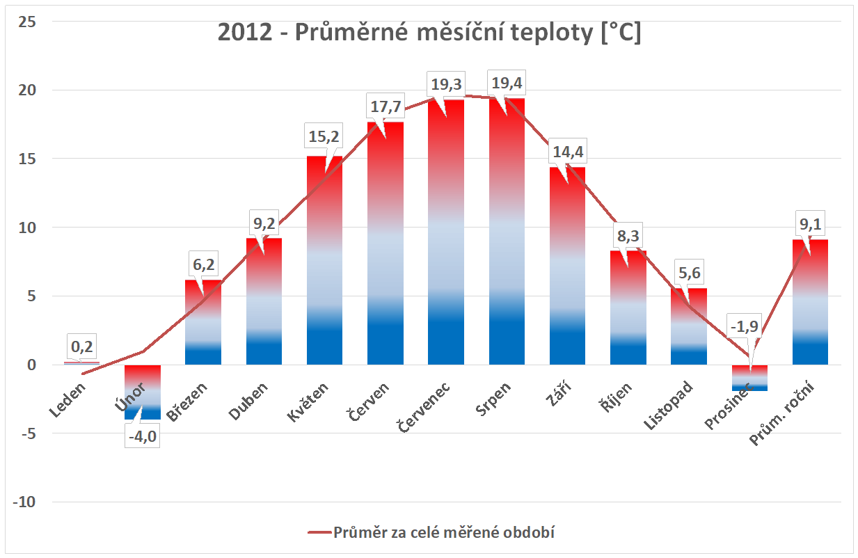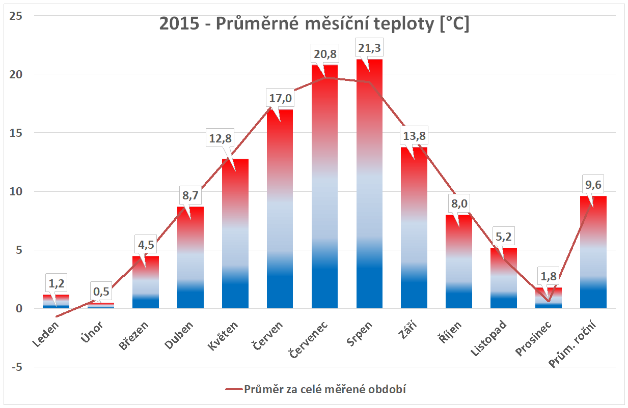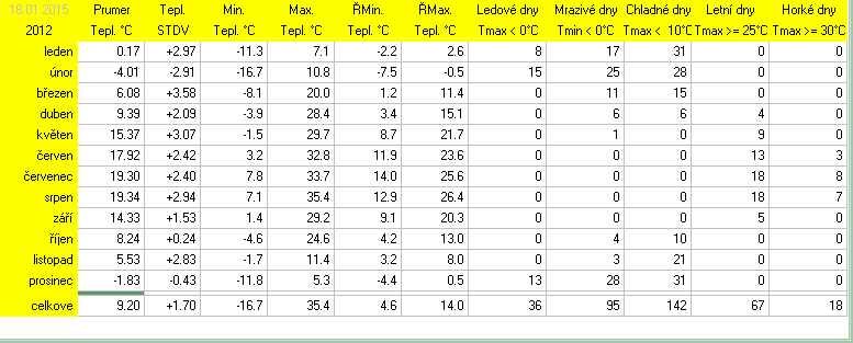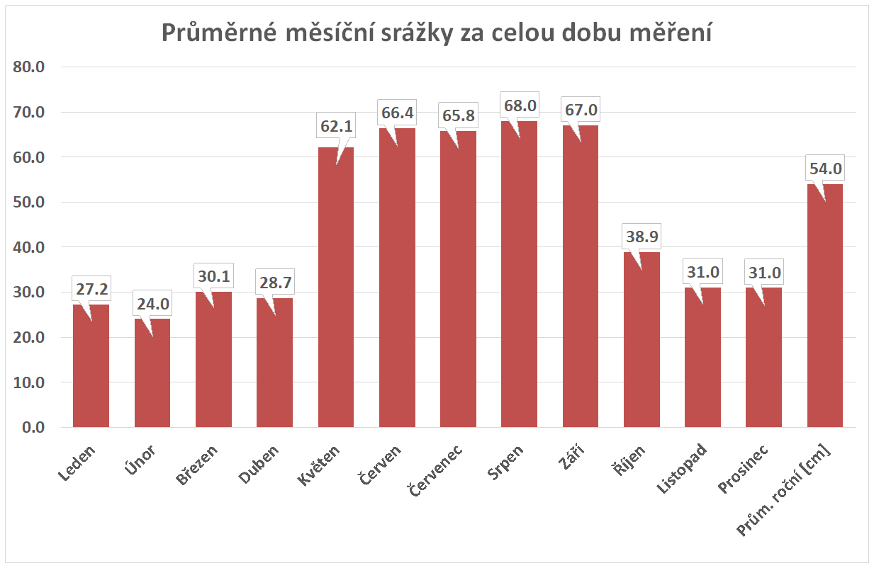 * normál je průměr za celou dobu měření pro daný měsíc