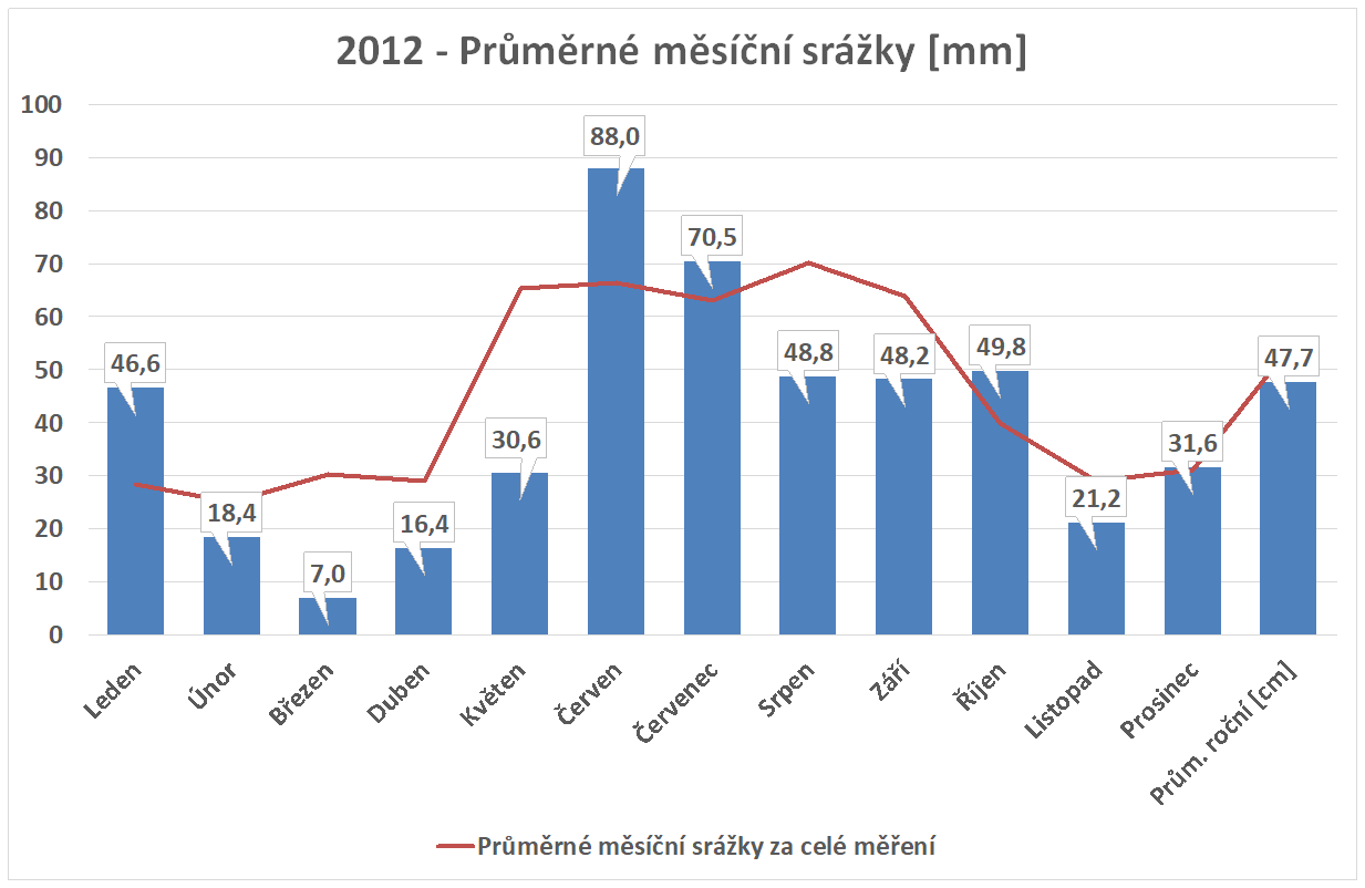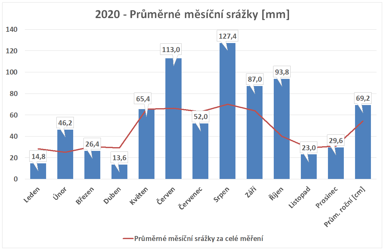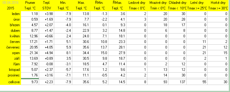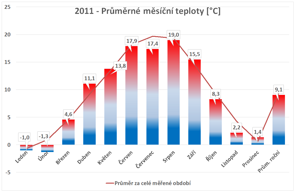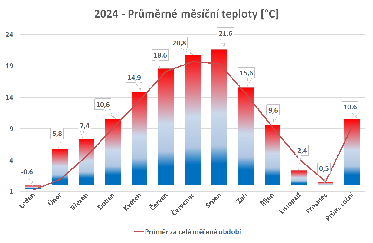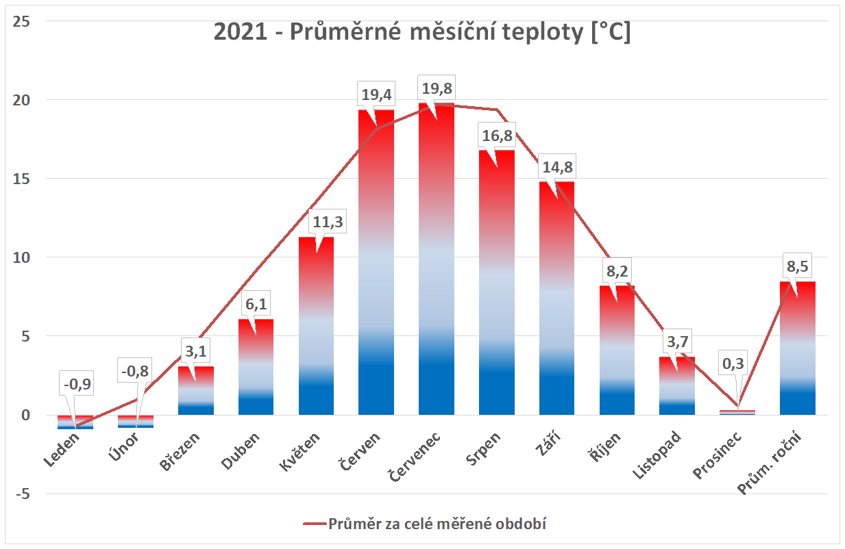 * normál je průměr za celou dobu měření pro daný měsíc