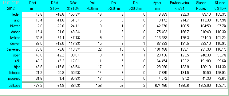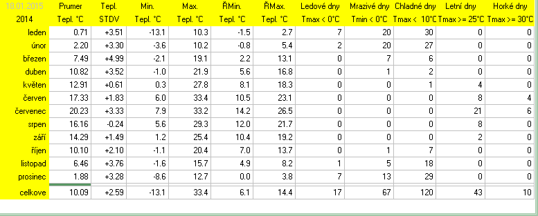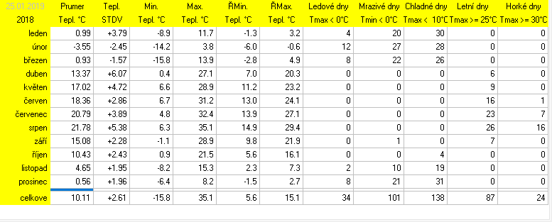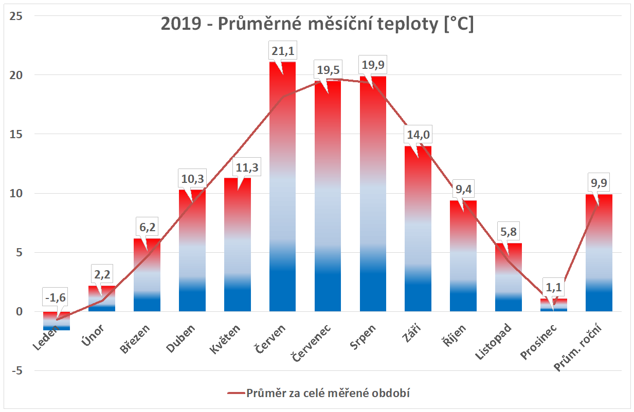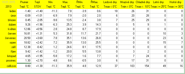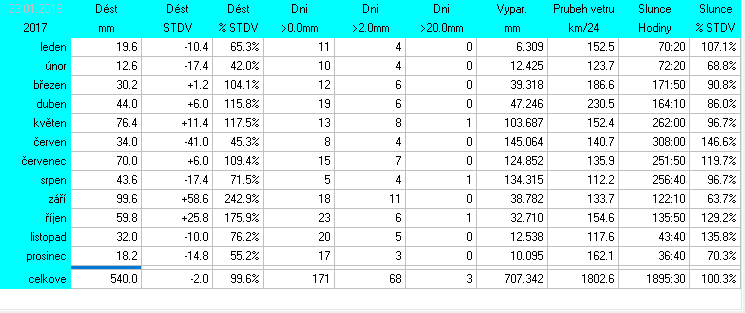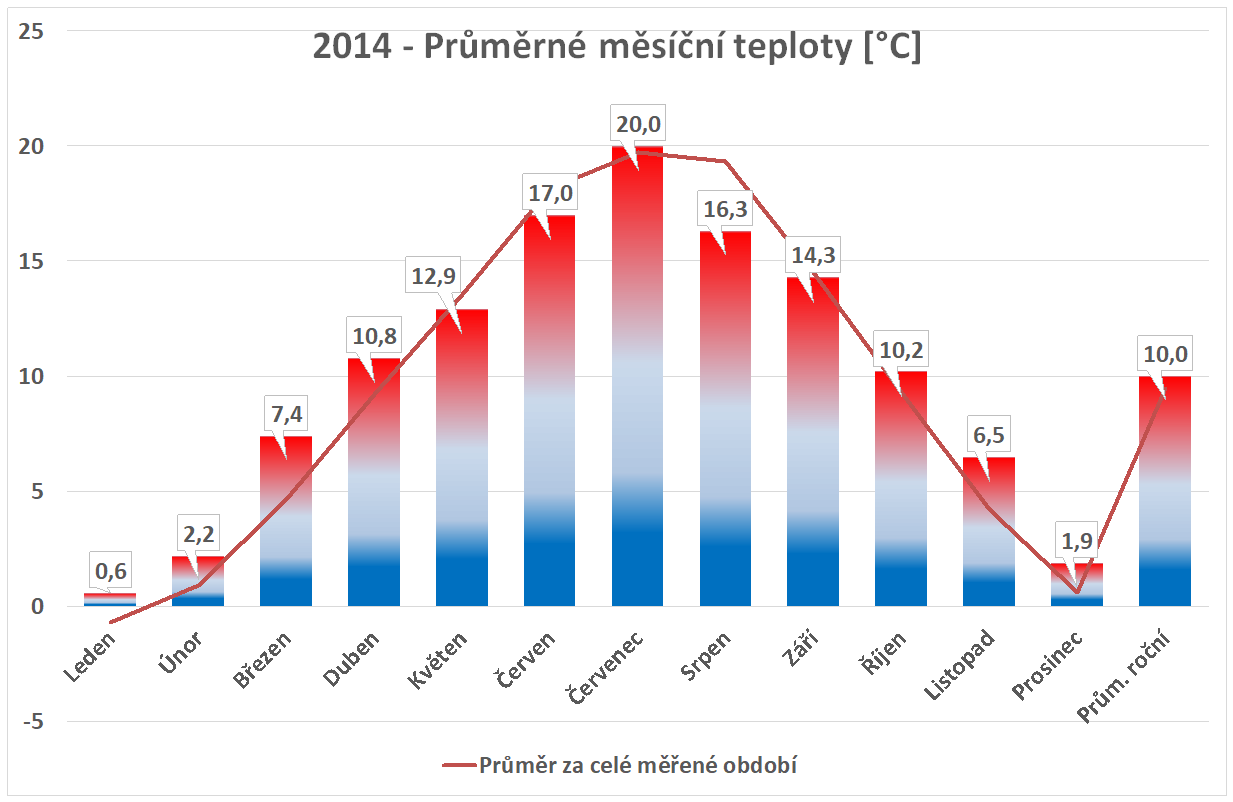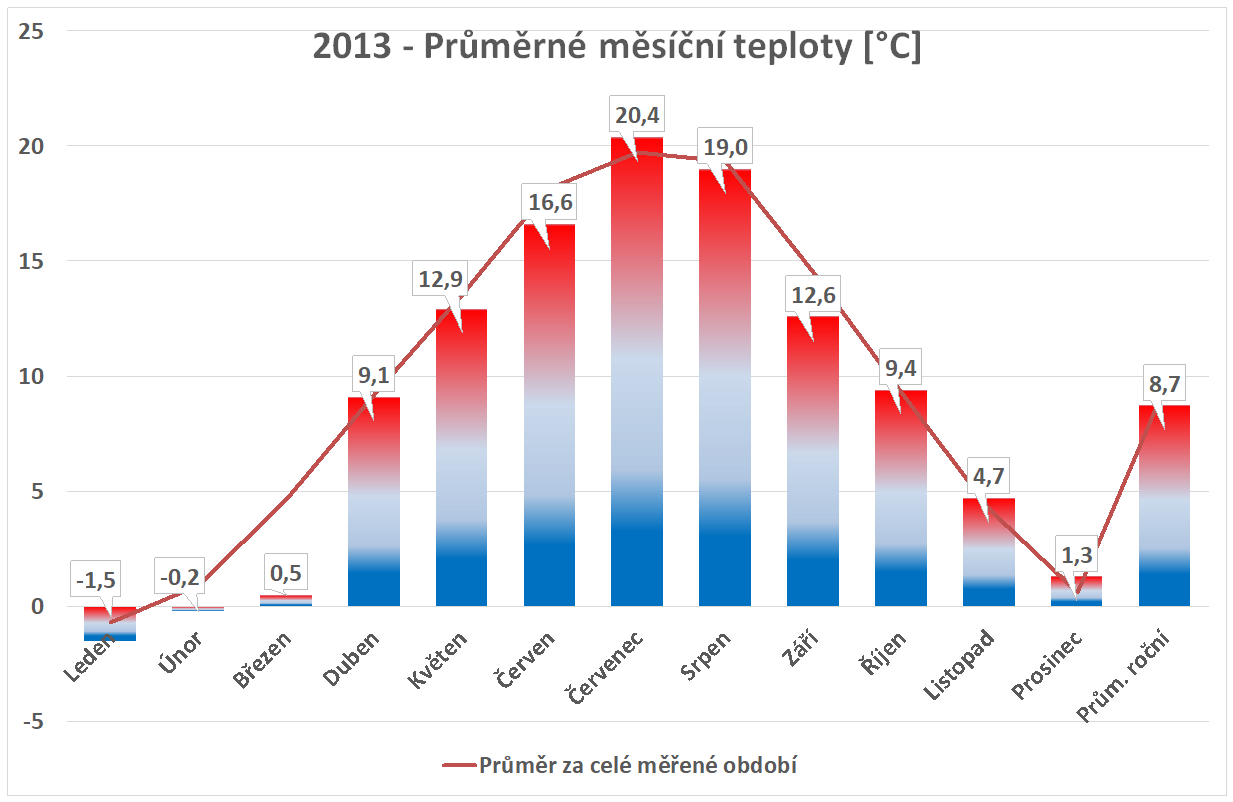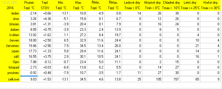 * normál je průměr za celou dobu měření pro daný měsíc